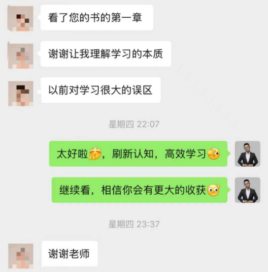 也有读者说:“看了您的书的第一章,谢谢让我理解学习的本质,以前对学习很大的误区。”